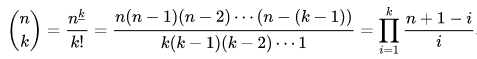 Here, we will first compute this using an iterative method, using the Multiplicative Formula: